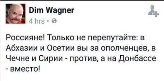 Россияне! Главное не перепутать! В Абхазии и Осетии вы за ополченцев, в Сирии против, а на Донбассе - вместо!
