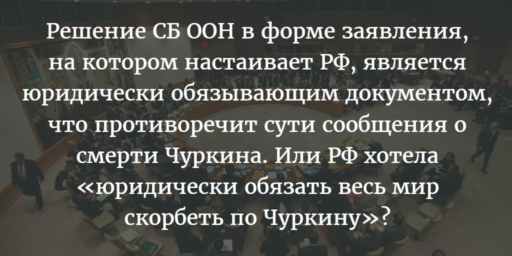 В СБ ООН "заявление для прессы"- информирует,а "заявление"- к чему-то обязывает.РФ опозорилась,потребовав именно заявления СБ ООН по Чуркину