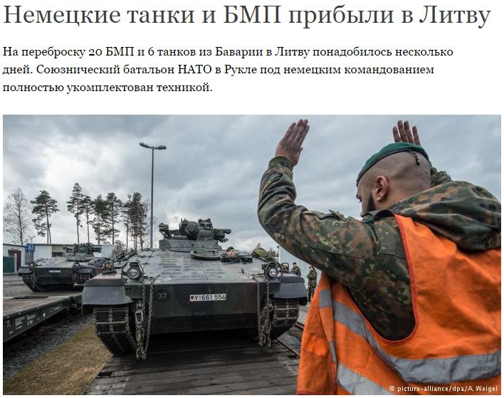 Как изменился Мир! Сейчас немецкие танки в Литве уже не как оккупанты, а как защита от возможной оккупации со стороны России.