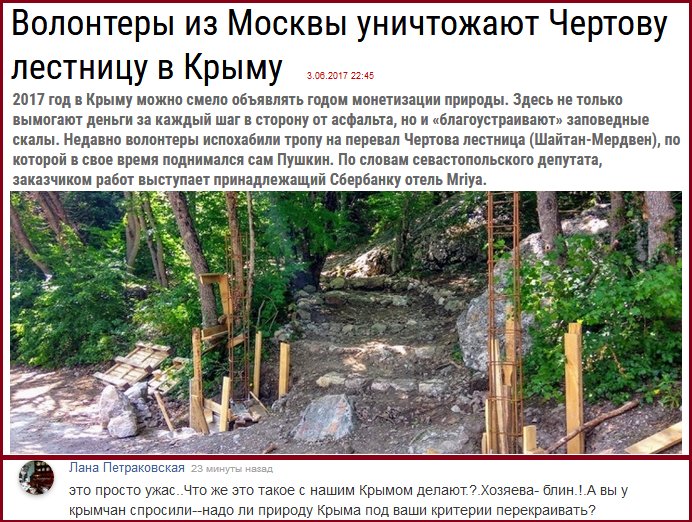 Крым. Волонтеры из Москвы уничтожают Чертову лестницу. Оккупанты приказали не мешать этому процессу. Фоторепортаж > primechaniya.ru/home/news/iyun_2017/chertova_le... …