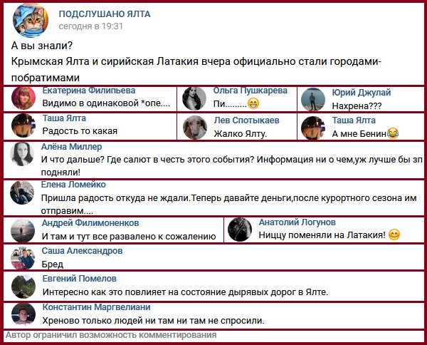 Крым. Жители Ялты наконец-то решили выразить радость по поводу с "побратимства" с сирийским городом
