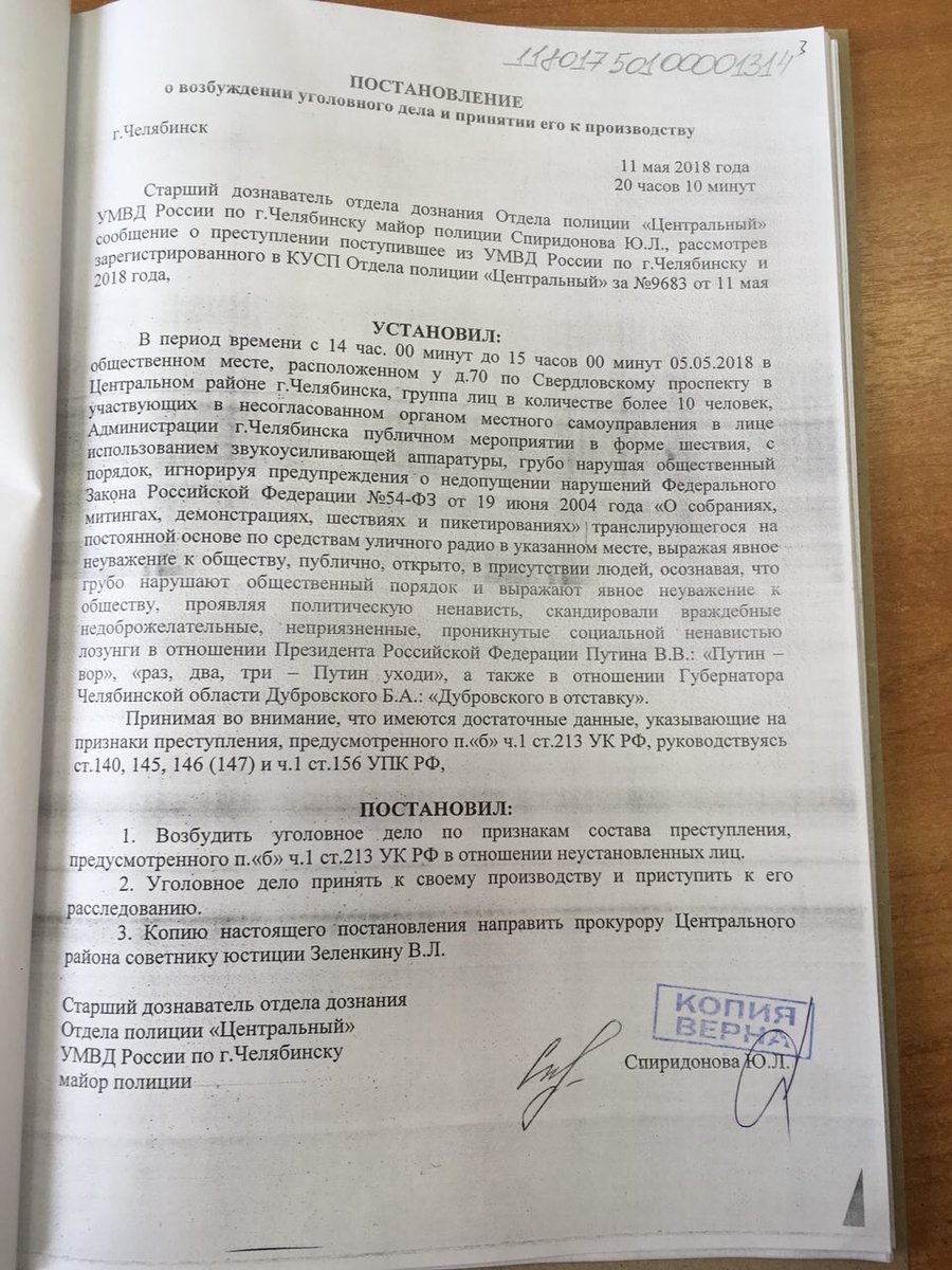 В Челябинске придумали за "раз, два, три — Путин уходи" давать 7 лет. Страшную рознь, говорят, разжигает.