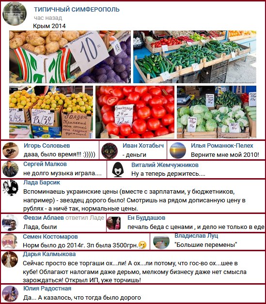 На симферопольском паблике разместили фото прилавков в первые месяцы оккупации с ценами в гривнах и рублях, когда ещё продавались украинские продукты и ходили две валюты - наша и оккупантов. Ватники поняли, что с “низкими” укр. зп могли позволить значительно больше, чем сейчас