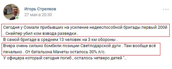 Печальный Гиркин скулит что снайпер ВСУ ликвидировал командира разведки "Сомали", а на Светлодарской дуге разгромлен батальон "Мачете"