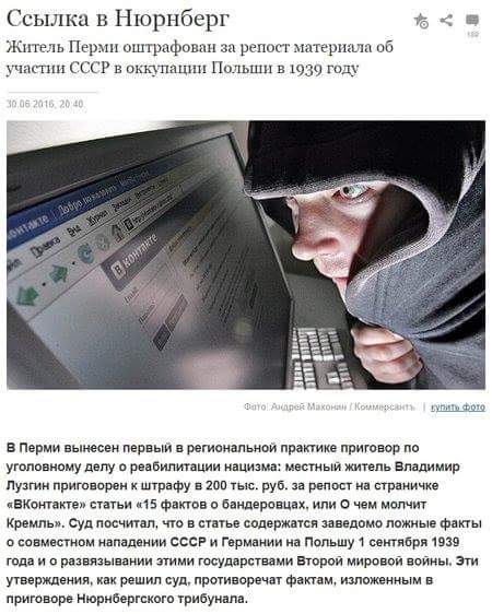 Жителя Перми оштрафовали за репост материала о совместной с Гитлером оккупации Польши в 1939 году. Вчера как раз годовщина начала советского вторжения.