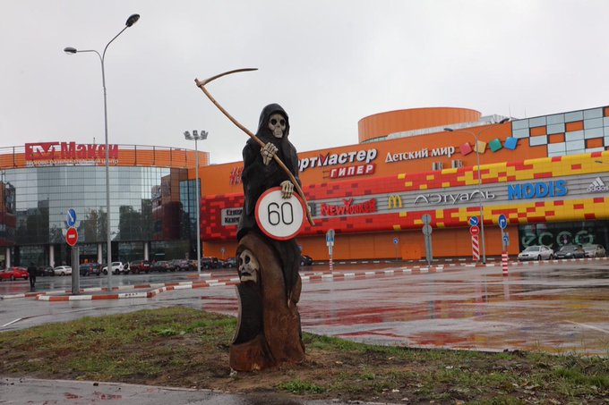 Вчера вечером исчезла установленная муниципалитетом города, фигура смерти, призванная предупреждать водителей об опасности превышения скорости. Администрацией обратилась в полицию, с целью разыскать украденную смерть.