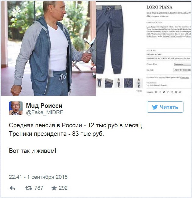 А почему Медведев не осудил российских чиновников за дорогие и пафосные треники?