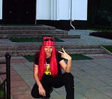 для тех, кто не понял - на фотке Кози, ритм-гитарист Storm Rider танцует какую-то фигню, а Гэн откровенно и, кстати, долго лапает его)))))