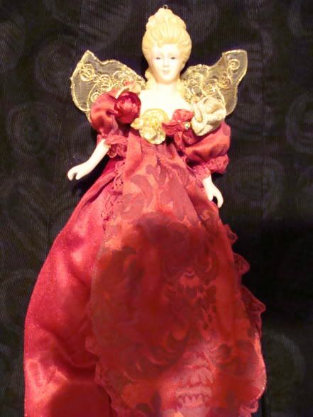 В Красном кубе продаются ангелы на елку, явно сделанные из набора головка + ручки, за которым я так долго и безуспешно гонялась по Tiimari. Одеты эти ангелицы почему-то в красные пеньюары самого бордельного толка, поверх прически наклеена золотая канитель, но все это можно аккуратненько ободрать. Я уже почти отмыла свою генеральшу Синтянину (очень напоминает героиню романа Лескова "На ножах"), теперь нужно соорудить для нее тело (под платьем - ничего, в смысле полная бестелесность), и, на сладкое, гардероб